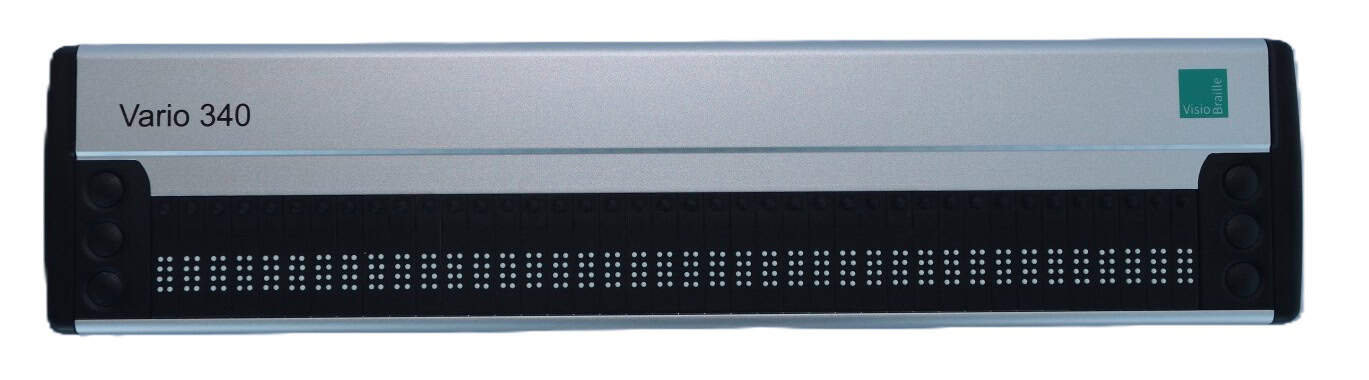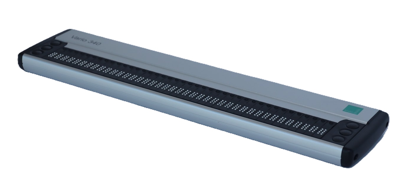 Die formschöne und einfach zu bedienende Vario 340-Zeile mit 40 Braille-Elementen zählt zu den kleinsten und leichtesten Braille-Ausgabegeräten. Vario 340 ist als „kleine Lösung“ für die Ausstattung eines privaten Arbeitsplatzes wie auch im beruflichen Umfeld geeignet.